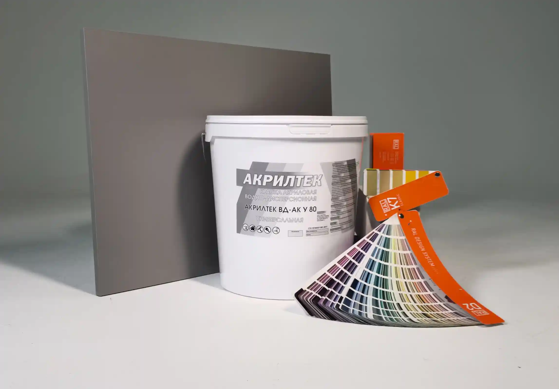 Краска-эмаль ВД-АК У 80 Предназначена для защитно-декоративного окрашивания металлов из оцинкованного железа: вентиляционных каналов, кабельных лотков и прочих конструкций из оцинкованного металла, а также изделий и конструкций из цветных металлов, изделий окрашенных порошковой краской