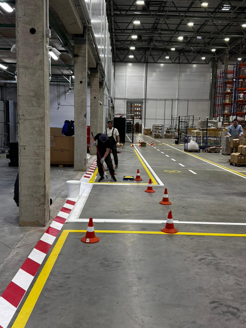 - Нескользящая поверхность. Специальные добавки в составе краски обеспечивают антискользящие свойства покрытия, что повышает безопасность эксплуатации пола, особенно в помещениях с повышенной влажностью или вероятностью проливания жидкостей.